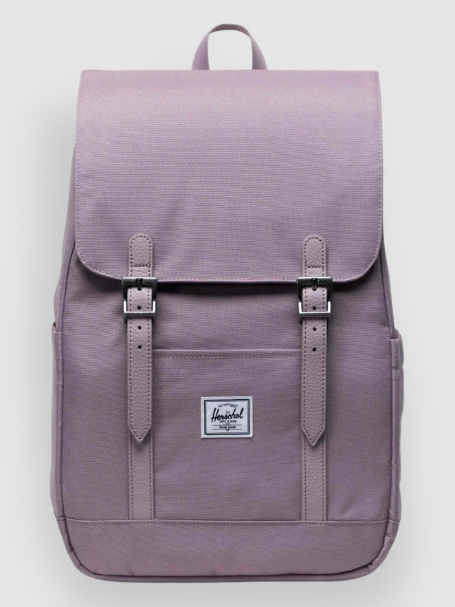 For everyday adventures, the Herschel Retreat Small Backpack for women is a scaled-down version of the classic mountaineering backpack. The outer material of this backpack is made from 100 % recycled polyester.