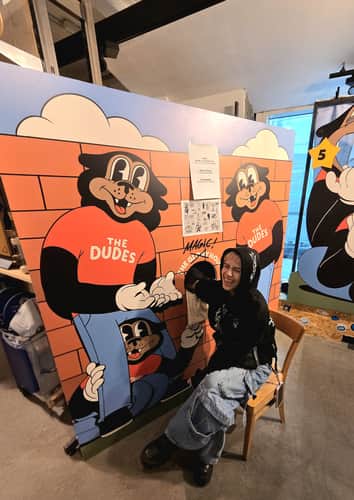 The Dudes is a Berlin-based collective and lifestyle brand founded in 2010 by a group of friends, including illustrator Mcbess (Matthieu Bessudo). The Dudes centres on the distinctive visual language of Mcbess’ illustration, combining irreverent humour with references to music, food, and underground culture. Drawing on shared interests in art, strong drinks, loud music and social ritual, The Dudes has developed an international following within contemporary graphic and streetwear communities.