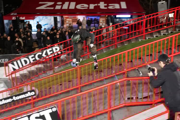 The snowboard event, held in thick snowfall, saw 14-year-old Marie Kuhlmann (GER) take her second Rock A Rail victory for the women, followed by Mia Langridge (GBR) in second and Anne-Sophie Lechon (BEL) in third (who also won Best Trick). In the men’s field, Moritz Amsuess (AUT) successfully defended his Innsbruck title (and won Best Trick), followed by Jed Sky (USA) in second and 16-year-old Colin Frans (USA) in third.